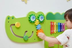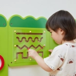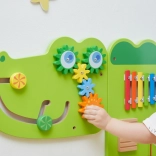 Zabawna drewniana ścienna tablica w kształcie krokodyla zapewnia dzieciom od 18 miesięcy godziny sensorycznego odkrywania i treningu małej motoryki. Oferuje ksylofon, zębate kółka, labirynt, elementy przesuwne i obrotowe oraz koraliki na drucie, które rozwijają koordynację oko–ręka, myślenie logiczne i wrażliwość muzyczną. Dzięki montażowi na ścianie oszczędza przestrzeń i idealnie sprawdza się w pokojach dziecięcych, przedszkolach i kącikach zabaw.