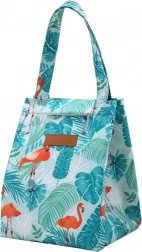 Torba wykonana jest z lekkiego, wodoodpornego materiału, który doskonale nadaje się do codziennego użytkowania i łatwo się czyści. Wnętrze wykończono folią termoizolacyjną, która chroni zawartość przed zmianą temperatury – pomaga utrzymać ciepło lub chłód przygotowanych posiłków. Krótsze, solidne uchwyty zapewniają wygodne noszenie torby w dłoni lub na przedramieniu, a zapięcie na rzep w górnej klapie umożliwia szybkie i łatwe otwieranie oraz zamykanie.