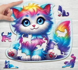 WOODEN CITY Drewniana układanka Kolorowy kociak to niesamowita układanka z unikalnie ukształtowanymi elementami w kształcie zwierząt, która gwarantuje większe wyzwanie i zabawę dla wszystkich miłośników puzzli.