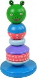 Ta kolorowa piramida dla dzieci zawiera 6 zaokrąglonych krążków w różnych rozmiarach i wzorach z uroczą główką żabki na szczycie. Półkulista podstawa sprawia, że przy każdym dotyku zabawka się buja, co utrudnia nakładanie krążków na kołek, a tym samym rozwija dziecięcą wyobraźnię i koordynację ręka-oko.
