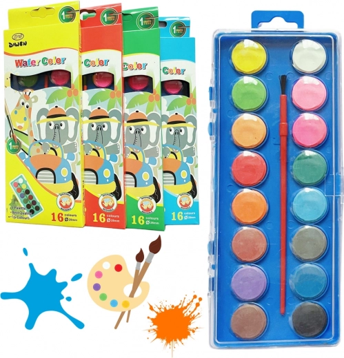 Zestaw szkolnych farb akwarelowych jest perfekcyjny dla dzieci, które dopiero uczą się malować, jak i dla tych, które już rozwijają swoje zdolności artystyczne. Opakowanie zawiera 16 intensywnych kolorów, z których można wygodnie korzystać dzięki plastikowej paletce z przezroczystą pokrywką.