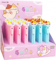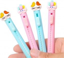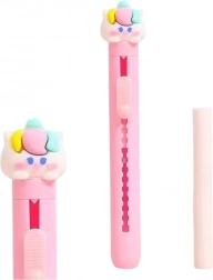 Wysuwana gumka z kocią figurką oferuje pastelowe kolory i zabawny design, który spodoba się nie tylko dzieciom. Jest miękka i delikatna dla papieru, a jednocześnie skutecznie usuwa grafit. Idealna do szkoły, do domu lub do zajęć plastycznych.