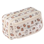 Duży i funkcjonalny piórnik z motywem kapibar jest idealny dla uczniów, którzy cenią praktyczność i uroczy wygląd. W kremowym kolorze z nadrukiem sympatycznych kapibar wyróżnia się na tle innych przyborów szkolnych. Sprawdzi się w szkole, na studiach, na zajęciach plastycznych lub w domowym biurze.
