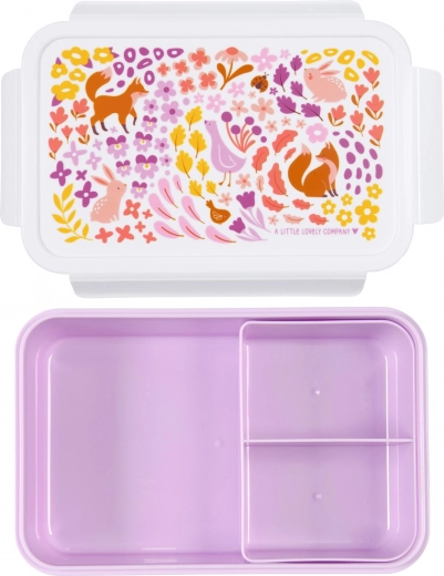 To praktyczne pudełko na przekąski z motywem zwierzątek w kwiatowym ogrodzie jest idealne dla dzieci do szkoły lub na wycieczki. Hermetycznie zamykana pokrywka na zatrzask oraz wyjmowany pojemnik z dwiema przegródkami zapewnią, że przekąski będą zawsze przejrzyście uporządkowane.
