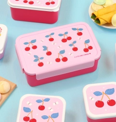 Lunch box z motywem wiśni od A Little Lovely Company jest idealnym towarzyszem do szkoły oraz na wyjazdy. Dzięki szczelnemu wieczku i wyjmowanej komorze Twoje przekąski pozostaną świeże i uporządkowane przez cały dzień.