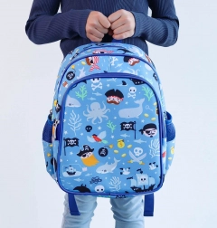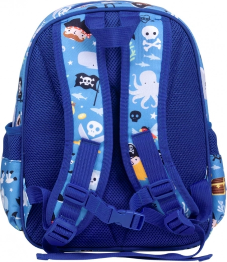 Pojemny dziecięcy plecak z pirackim nadrukiem jest idealny do przedszkola lub w podróż. Oferuje praktyczne miejsca na przekąski, napoje i inne niezbędne drobiazgi.