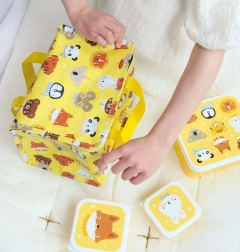 Ta żółta torba chłodząca wyróżnia się nie tylko pięknym designem ze zwierzęcymi przyjaciółmi, ale także praktycznością. Została wykonana w 90% z plastiku z recyklingu, co przyczynia się do ochrony środowiska.