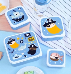 Zestaw czterech pudełek śniadaniowych w pirackim stylu, idealnych na lunch i przekąski. Pudełka łatwo się otwierają, zamykają i można je układać jedno na drugim, aby oszczędzać miejsce.