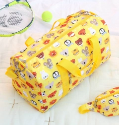Przestronna i praktyczna dziecięca torba podróżna z wesołym nadrukiem zwierzęcym. Idealna na sport lub wycieczki, z możliwością noszenia w ręce lub na ramieniu.