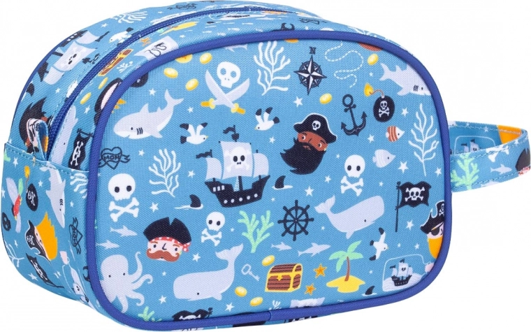 Ta niebieska kosmetyczka oferuje wszystko, czego dziecko potrzebuje w podróży. Ma przestronną komorę z wystarczającą ilością miejsca na wszystkie niezbędne przybory toaletowe, takie jak szampon, mydło, szczoteczka do zębów i pasta. Dzięki praktycznemu uchwytowi łatwo jest ją nosić i zawieszać.