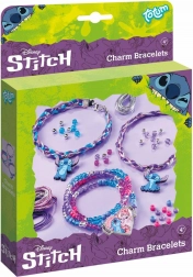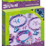 Zestaw zawiera koraliki w różnych kolorach, sznureczki, końcówki, kółeczka, zapięcia i zawieszki STITCH – wystarczy otworzyć i tworzyć.