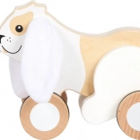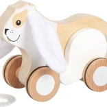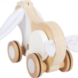 Uroczy króliczek wykonany z wysokiej jakości, solidnego drewna zachwyci każde dziecko swoimi miękkimi, szeleszczącymi uszami i ogonkiem. Wspiera rozwój umiejętności motorycznych i zachęca dzieci do raczkowania oraz chodzenia dzięki sznurkowi, który można łatwo ciągnąć. Gumowane kółka zapewniają płynną i cichą jazdę.