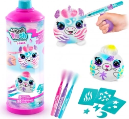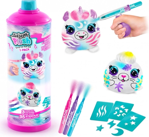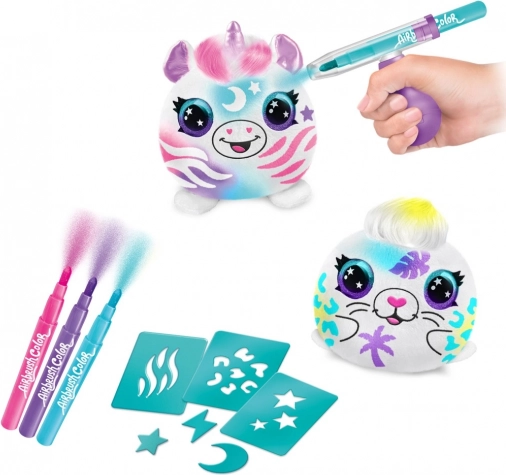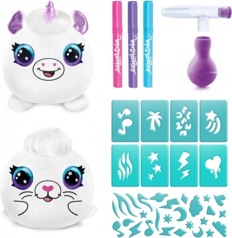 Zabawny i kreatywny zestaw zawiera narzędzie airbrush oraz trzy markery, które umożliwiają nieskończone możliwości projektowania. W opakowaniu znajdziesz dwie niespodziankowe pluszowe maskotki o wysokości 10 cm, które możesz ozdobić według własnej wyobraźni, korzystając z dołączonych szablonów. Seria oferuje łącznie 6 rodzajów pluszaków, więc każde opakowanie jest wyjątkowe!