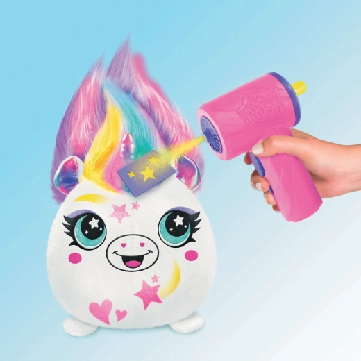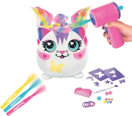 W tym wyjątkowym zestawie znajdziesz pluszaka z włoskami, narzędzie airbrush na baterie, trzy flamastry oraz trzydzieści szablonów, które pozwalają na nieograniczone możliwości dekorowania. Po wypraniu zgodnie z instrukcją możesz zacząć od nowa i stworzyć nowy projekt.