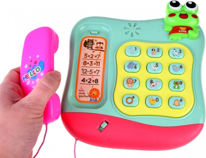 Poznaj ten kolorowy muzyczny telefon dla dzieci, który zapewnia mnóstwo zabawy i funkcji edukacyjnych. Każdy przycisk w telefonie nie tylko odtwarza różne melodie i dźwięki, ale jest też oznaczony obrazkami zwierząt oraz liczbami po angielsku. Po podniesieniu słuchawki słychać dźwięk dzwoniącego telefonu z melodią powitalną, a po odłożeniu rozlega się charakterystyczny dźwięk odkładanej słuchawki.