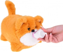 W opakowaniu znajdziesz również małą buteleczkę, którą możesz przyłożyć do pyszczka pieska i udawać, że go karmisz. W tym czasie usłyszysz wesołe mlaskanie, naśladujące dźwięki podczas jedzenia ulubionego psiego przysmaku.