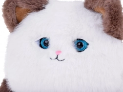 Cała kotka jest biała z brązowymi łapkami i ogonem. Wymiary: długość 25 cm, szerokość 17 cm, wysokość z ogonem 24 cm, bez ogona 18 cm.