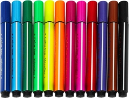 W opakowaniu znajdziesz 2 czarne markery do rysowania, 12 kolorowych pisaków do kolorowania oraz kabel USB do łatwego ładowania.