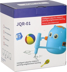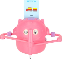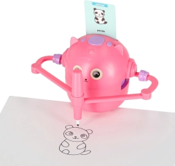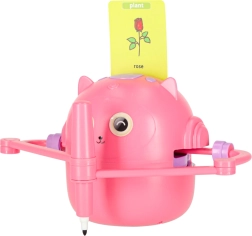 Postawiliśmy na prostotę i radość z nauki. Wystarczy włożyć kartę z obrazkiem, umieścić pisak w ręce robota i obserwować, jak powstaje rysunek krok po kroku. Dziecko może następnie pokolorować ilustrację i ćwiczyć małą motorykę, cierpliwość oraz koncentrację. Interaktywne wskazówki głosowe w języku angielskim w naturalny sposób poszerzają słownictwo.