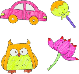 Robot trzyma pisak i na oczach dziecka rysuje według wybranej karty. Dzieci śledzą przebieg, uczą się kształtów i proporcji, a następnie samodzielnie kolorują obrazek.