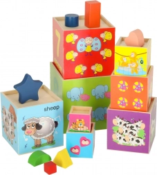 Drewniana wieża z zwierzętami z farmy – zabawa i nauka w jednym!