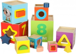 Klocki wspierają rozwój umiejętności językowych i matematycznych, rozpoznawanie kształtów oraz precyzję.