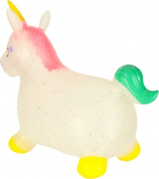 Wykonany z elastycznej i wytrzymałej gumy, skaczący jednorożec jest miękki i sprężysty, z certyfikowanym poziomem bezpieczeństwa.