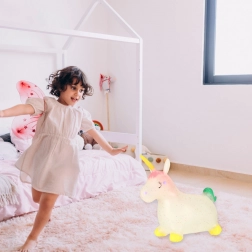 Dzięki specjalnie zaprojektowanej ergonomicznej formie w kształcie jednorożca dziecko może wygodnie siedzieć i odpychać się nogami od podłoża.