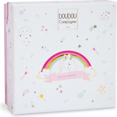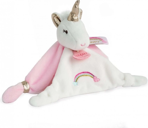 Pluszowy jednorożec Doudou zapewnia komfort i miękkość, idealny dla dzieci od urodzenia.