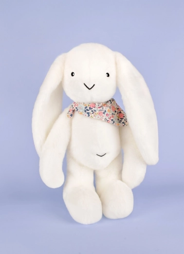 Mięciutki i przytulny królik o wysokości 50 cm oferuje dzieciom od urodzenia przyjaźń i poczucie bezpieczeństwa. Wyposażony w kwiecistą chustkę, przynosi radość z każdego przytulenia.