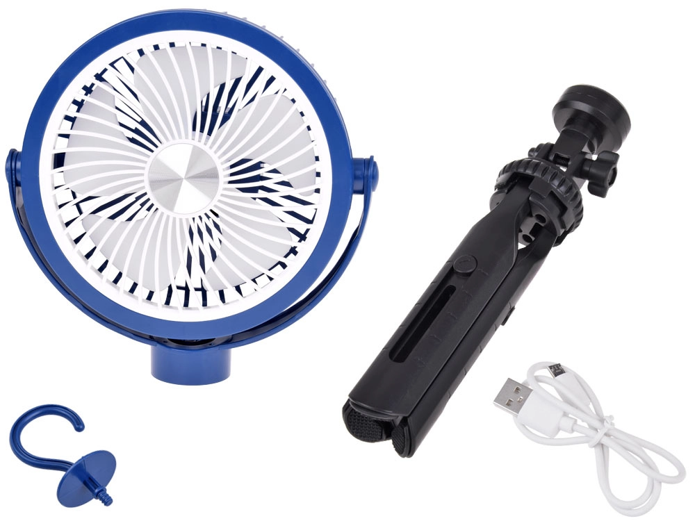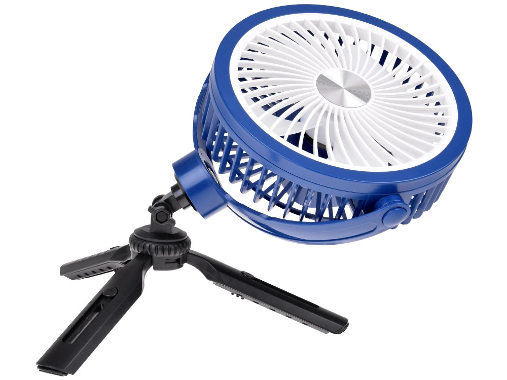 - Elastyczne zastosowanie: może być zawieszony w namiocie lub ustawiony na biurku dzięki regulowanym nóżkom.