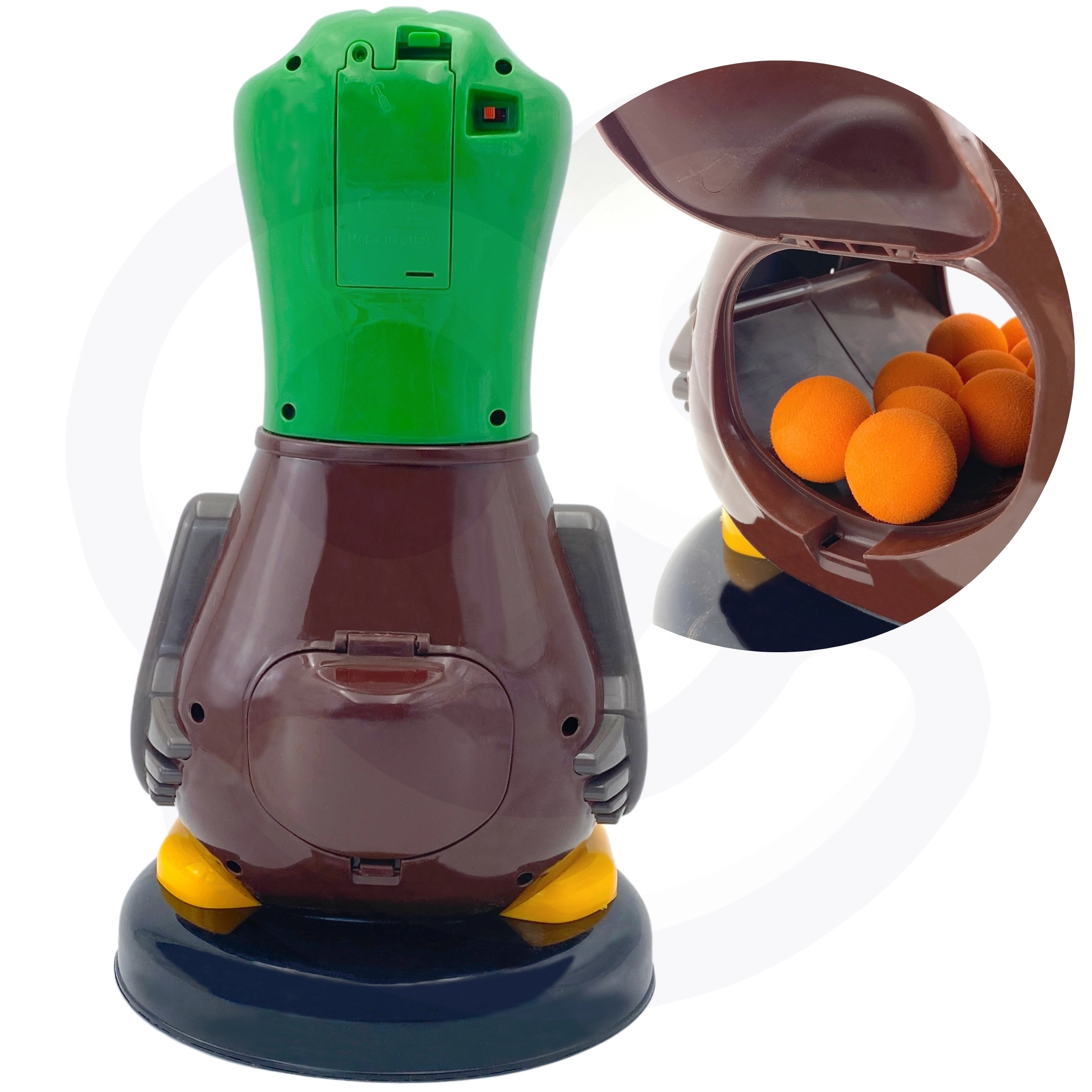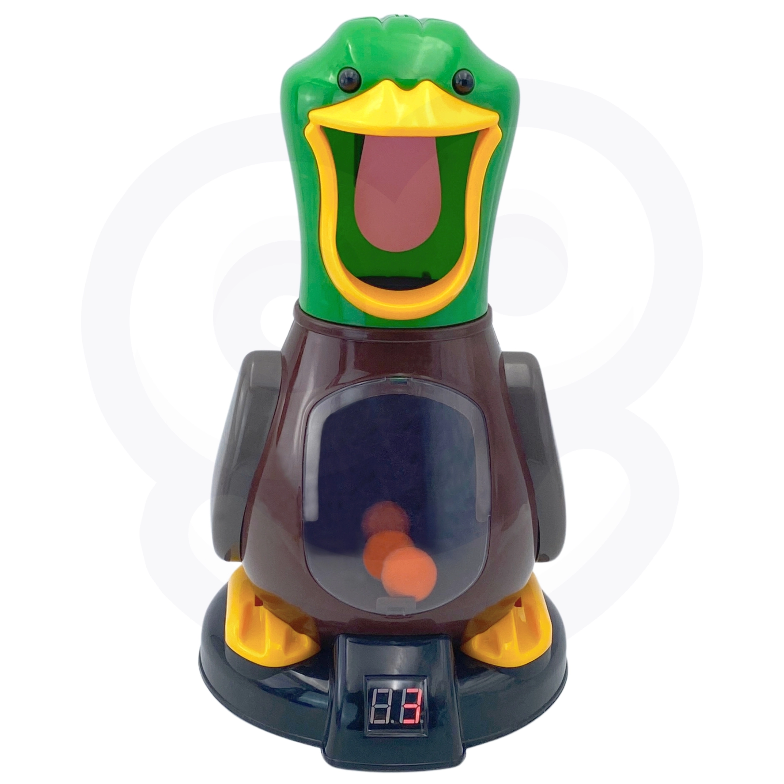 - Kaczka z wyświetlaczem LCD, 12 piłeczek, 1 pistolet na piłeczki