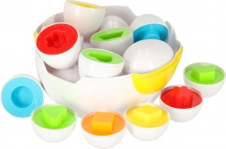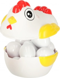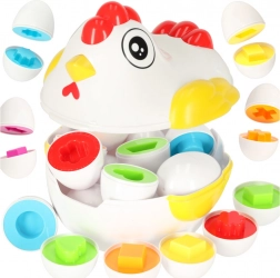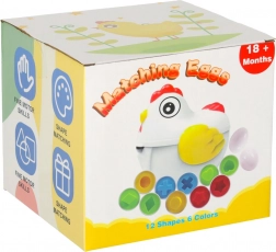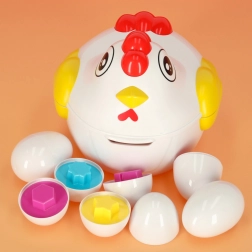 Wesoła Kurka z niespodzianką! Ta edukacyjna zabawka oferuje 12 jajeczek, które należy złożyć według kształtów. Każde jajko skrywa element pasujący tylko do właściwej połówki.