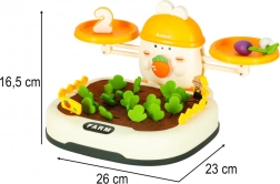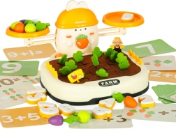 Zestaw angażuje dziecko w ekscytującą zabawę, podczas której sadzi i wyciąga warzywa oraz umieszcza je na wadze. Ta aktywność rozwija cierpliwość, refleks i pomaga oswajać drobne niepowodzenia. Idealnie wspiera koordynację ręka–oko i motorykę małą.