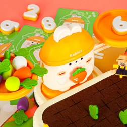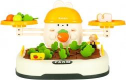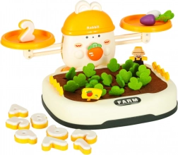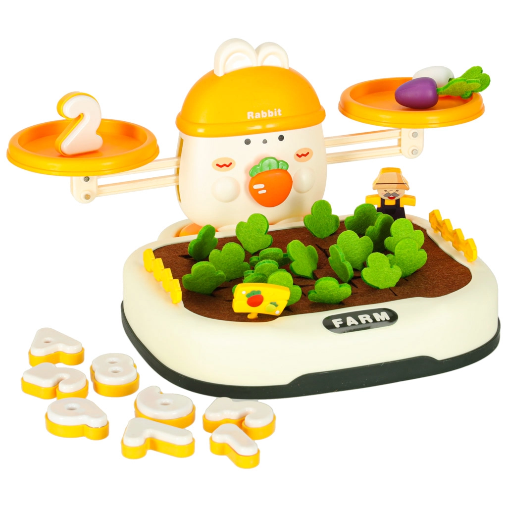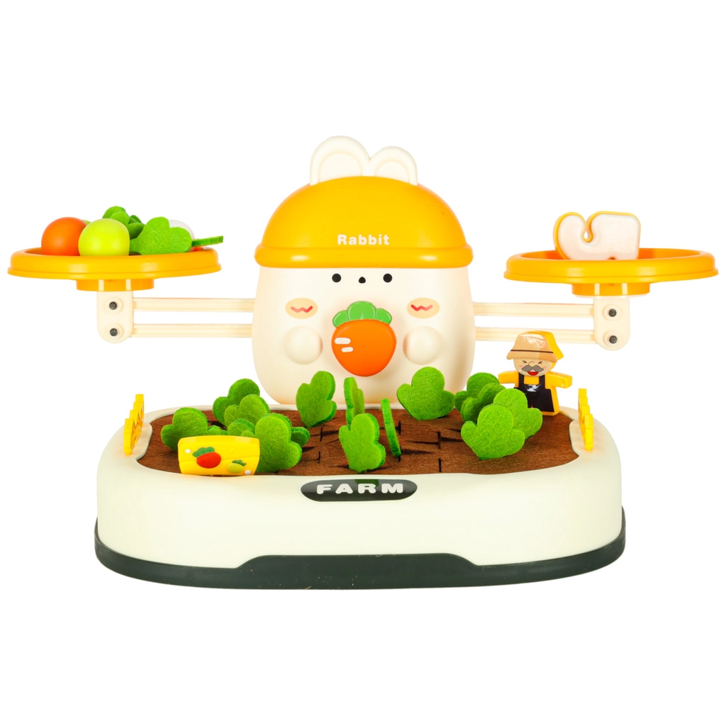 Górną częścią zestawu zarządza uroczy królik – pilnuje równowagi. Dzieci mogą układać marchewki i inne przedmioty, aby utrzymywać równowagę lub celowo ją zaburzać, ucząc się podstaw fizyki. Zestaw zawiera także specjalne cyfry z odpowiadającymi im ciężarami, dzięki którym dzieci uczą się porównywania wagi i wartości liczbowych.