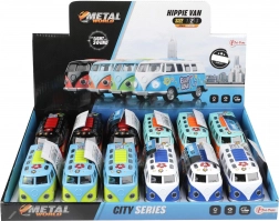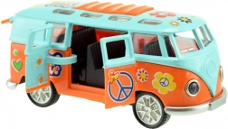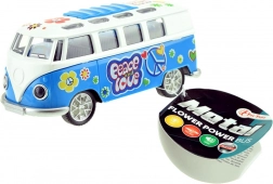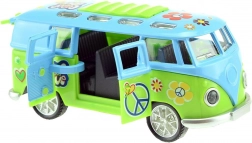 Odkryj miniaturowy retro autobus, który zachwyca na pierwszy rzut oka kolorowym „hippie” stylem, a po uruchomieniu zaskakuje efektami. Wystarczy pociągnąć go do tyłu i puścić – napęd bezwładnościowy zapewni żwawą jazdę, a światła i dźwięk silnika podkreślą wrażenia.
