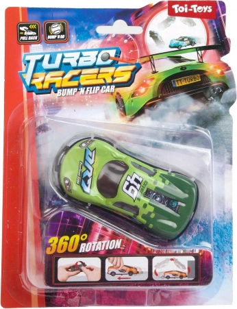 To przewracające się wyścigowe autko zapewnia pełną akcji jazdę z przewrotami, obrotami i niespodziankami. Wystarczy je naciągnąć do tyłu i obserwować, jak pędzi do przodu. Przy uderzeniu dzięki specjalnej konstrukcji automatycznie się przewraca i jedzie dalej – zabawa nie ma końca!
