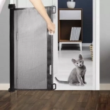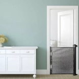 Wysuwana bramka działa jak elastyczna roleta z mocnej siatki, która zapewnia widoczność i przepływ powietrza, a jednocześnie tworzy bezpieczną barierę. Dzięki prostemiu montażowi do ściany i haczykowi po przeciwnej stronie można ją otwierać i zamykać jedną ręką, a po zwinięciu zajmuje minimalną ilość miejsca.