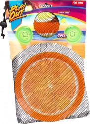 Zestaw w siateczkowym woreczku jest idealny w podróży. Motyw pomarańczy i lekkie plastikowe paletki zapewniają łatwe łapanie i szybką akcję w każdym miejscu.