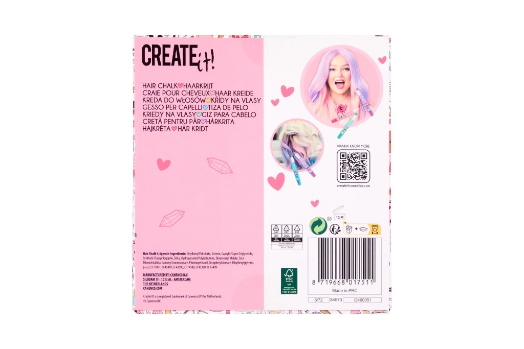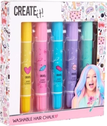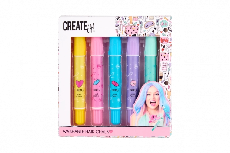 Kredki do włosów w sztyfcie Creat it! pozwalają szybko i łatwo zmieniać kolor włosów według upodobań. Idealne na specjalne okazje lub do codziennej stylizacji. Użycie jest proste, a kolory dopasowują się do wszystkich typów włosów: