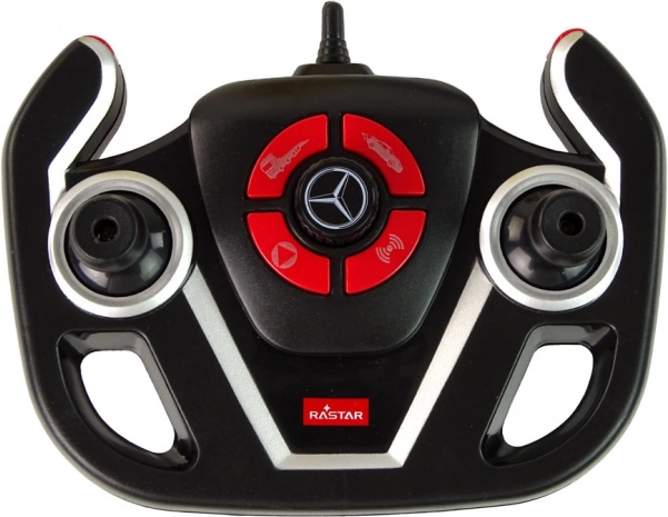 Pojazd ma wymiary 64 cm x 16 cm x 10 cm, co pozwala na transport innych zabawek. Czerwone autko Mercedesa, element zestawu, jest w pełni sterowane pilotem, a jego wymiary to 18 cm x 5 cm x 8 cm — idealne dla dziecięcych rąk. Wszystkie części, w tym pilot o wymiarach 13 cm x 6 cm x 10 cm, są wykonane z wytrzymałego plastiku, co gwarantuje długotrwałą zabawę.
