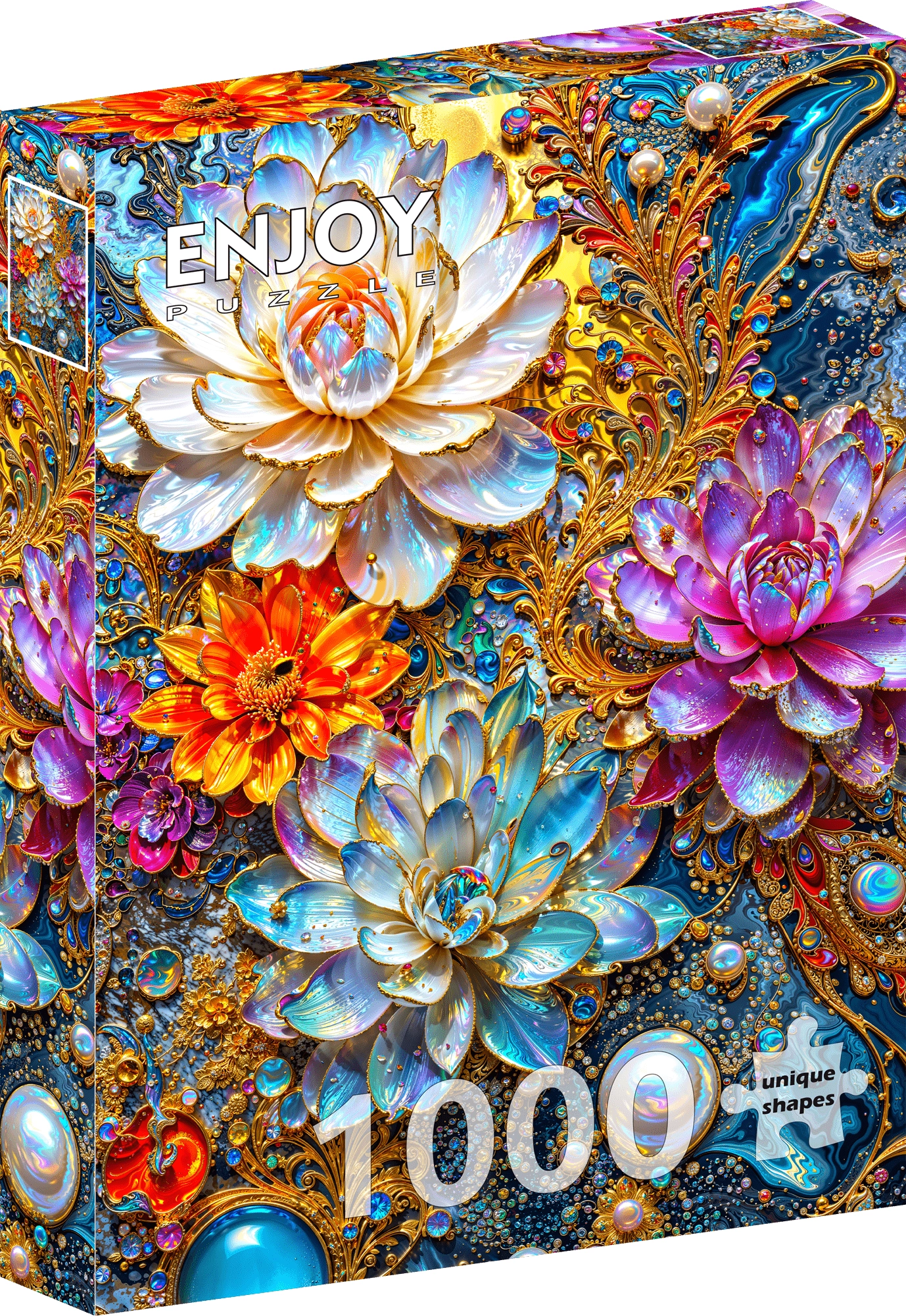 Niesamowite puzzle z motywem perłowych lilii wodnych. Układanka z 1000 elementów zapewnia rozrywkę dla całej rodziny i wprowadza magię natury prosto do Twojego domu.