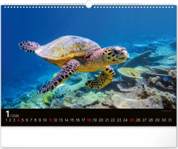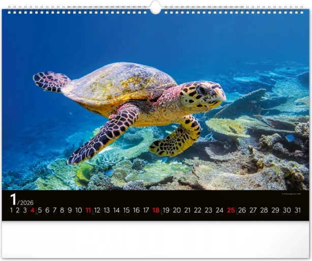 Nasz kalendarz ścienny Podwodny świat 2026 jest idealny dla miłośników przyrody i oceanów. Dzięki luksusowemu papierowi i żywym fotografiom jest nie tylko praktycznym pomocnikiem do śledzenia czasu, ale także wspaniałym elementem dekoracyjnym. Każda strona kalendarza uchwyca wyjątkowe piękno podwodnego świata, od barwnych koralowców po majestatyczne morskie stworzenia.