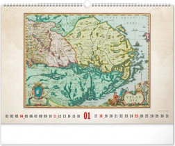Odkryj piękno starych ręcznie tworzonych map z tym kalendarzem ściennym na rok 2026. Idealny dla znawców map i miłośników sztuki użytkowej, dzięki szczegółowym rysunkom o wysokiej wartości estetycznej.
