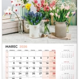 Udekoruj swoje wnętrze tym pięknym kalendarzem, który zawiera słowacki kalendarz z imionami, świętami państwowymi i dniami pamiętnymi. Każdy miesiąc ucieszy Cię trzymiesięcznym przeglądem i fotografiami barwnych aranżacji kwiatowych, które nigdy nie więdną i nie powodują alergii.