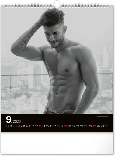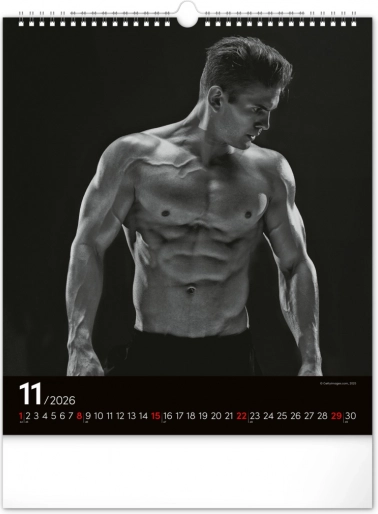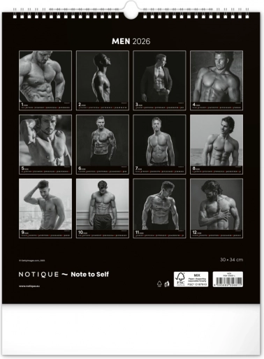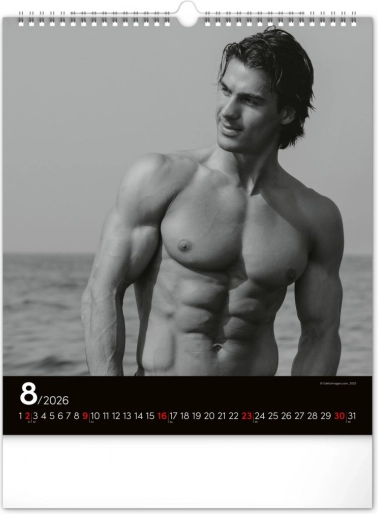 Ten kalendarz ścienny oczaruje cię czarno-białymi fotografiami, które uchwycają piękno i siłę atrakcyjnych mężczyzn w całej ich chwale. Elegancki design z prostym kalendarium na czarnym tle doda twojej przestrzeni szyku.