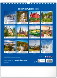 Kalendarz ścienny na rok 2026 przedstawia malownicze miejsca Republiki Czeskiej, od Karlowych Warów po Znojmo. Idealny dla każdego, kto kocha czeski krajobraz.