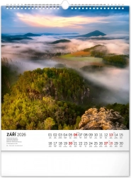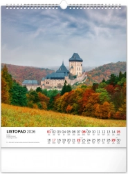 Udekoruj swoje wnętrze tym pięknym kalendarzem ściennym na rok 2026. Każdy miesiąc wzbogaci Twoją przestrzeń wspaniałym widokiem na niektóre z najpiękniejszych miejsc Czech. Odpowiedni zarówno dla domu, jak i biura.