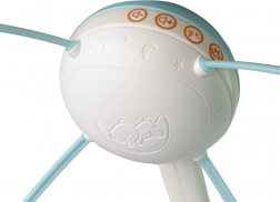 Karuzelę można zamocować zarówno na łóżeczku, jak i w wózku. Świetlny obraz z projektora przyciąga uwagę dziecka. Karuzela oferuje regulację głośności, a dzięki regulowanemu uchwytowi pasuje do większości łóżeczek.