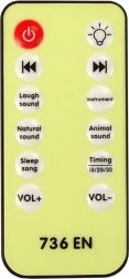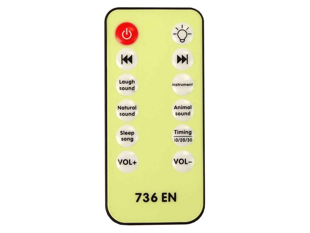 Sterowanie odbywa się za pomocą pilota, który reguluje oświetlenie, głośność i dźwięki. Funkcje obejmują: